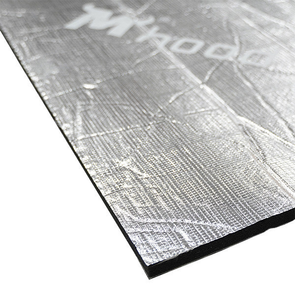 Speciallydesigned for use in engine compartment. Aluminium layer reflects heat waves and transforms the engine noises inmechanical energy to be absorbed by Sound-absorbing cotton, Water based pressure sensitive glue on trim base prevents material fromstarching during installation.