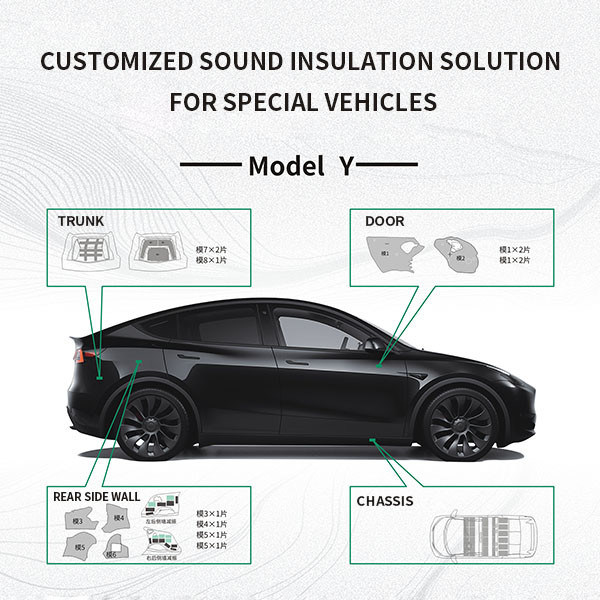 1,Noise Reduction: The Tesla Model Y, like many electric vehicles, can produce noticeable road, wind, and powertrain noise in the cabin, especially at higher speeds. Effective sound insulation helps to reduce these intrusive noises, providing a more peaceful and comfortable driving experience.